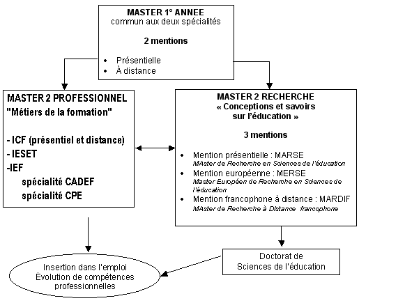 L’ouverture d’une mention francophone et à distance (MARDIF) confirme et développe cette dimension internationale, d’une part en termes d’universités associées (françaises, belges, suisses et canadiennes), d’autre part en termes de thématiques (apprentissage et didactique, nouvelles technologies, philosophie de l’éducation, histoire des idées pédagogiques). Elle est soutenue par l’Agence universitaire de la francophonie (AUF).